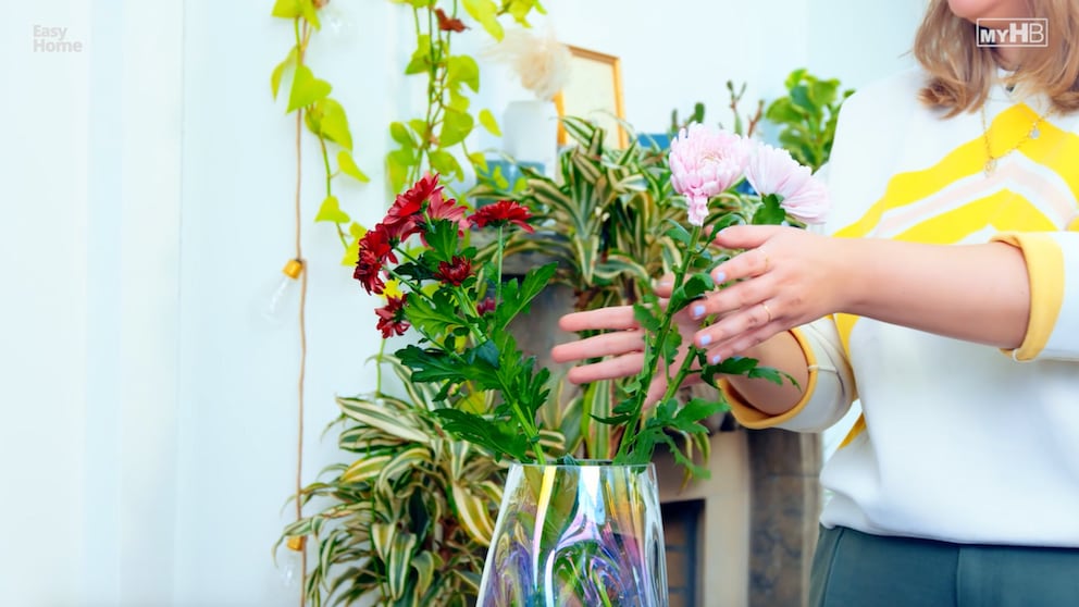 Frische Schnittblumen können einen Raum im Handumdrehen aufwerten. Damit die hübschen Blüten auch gut zur Geltung kommen, muss man sie richtig in der Vase arrangieren. myHOMEBOOK-Redakteurin Katharina Regenthal zeigt in der Video-Reihe „Easy Home“, wie ein sogenanntes Blumengitter Abhilfe schaffen kann.