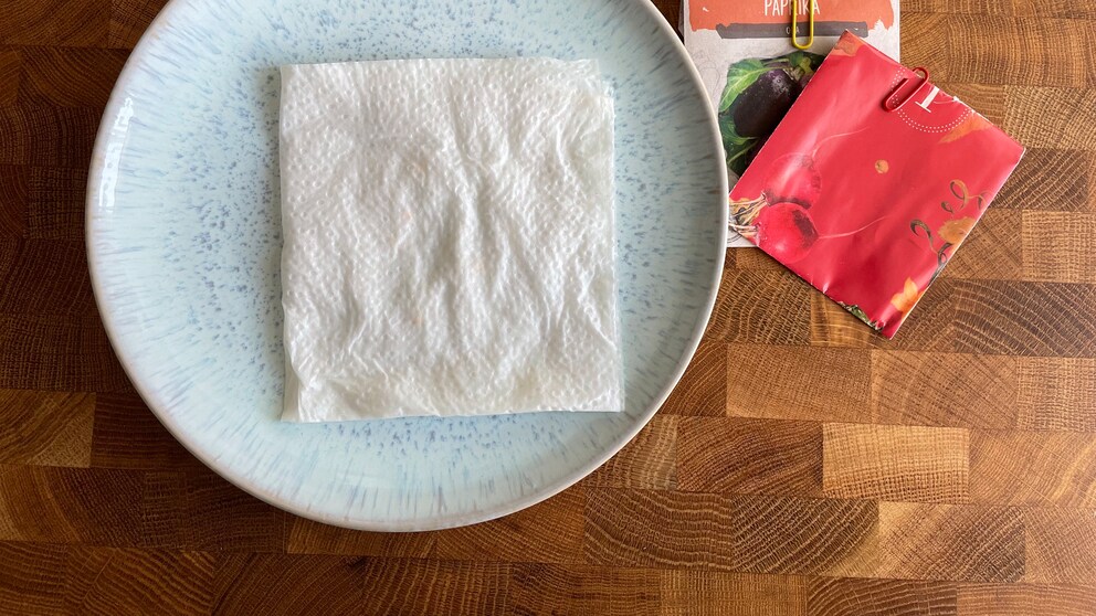 - Feuchtes Küchenpapier in eine Schale oder einen Teller legen.