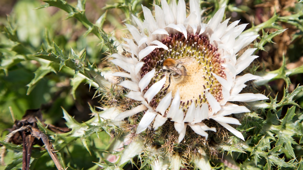 Die Silberdistel (Carlina acaulis) ist laut Carlin „eine der zuverlässigsten“ Wetterpflanzen. Hier lohnt es sich besonders, die Blüte zu begutachten. Wenn diese sich öffnet, „kann man mit einigen Stunden Sonne rechnen“. Wenn sich andersherum Regen ankündigt, bleiben die Blüten geschlossen. Diese Beobachtung kann sich beispielsweise lohnen, wenn man den Rasen mähen möchte, der dafür trocken sein sollte.