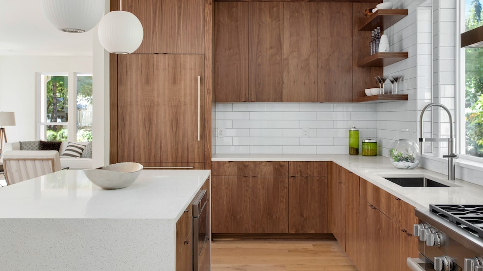 Mit schlichtem Design und ausgeprägten Maserungen schafft es die moderne Holzküche, auf ganzer Linie zu überzeugen Foto: Getty Images/hikesterson
