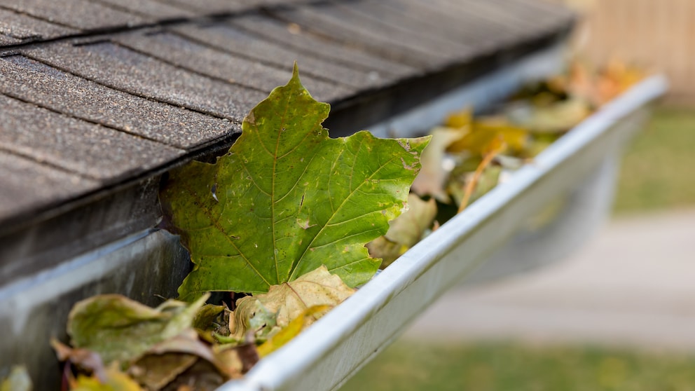 Sammelt sich im Herbst das Laub in der Regenrinne, kann das zu Schäden am Gebäude führen. Denn größere Mengen Laub können eine undurchdringliche Schicht bilden. Das Regenwasser such sich seine eigenen Wege und läuft etwa an der Hauswand herunter, warnt die Verbraucherzentrale NRW. Dies könnte zu erheblichen Feuchtigkeitsschäden an der Fassade, dem Dach und der Dämmung führen, so die Verbraucherschützer. Feuchte Wände und Schimmel sind mögliche Folgen.